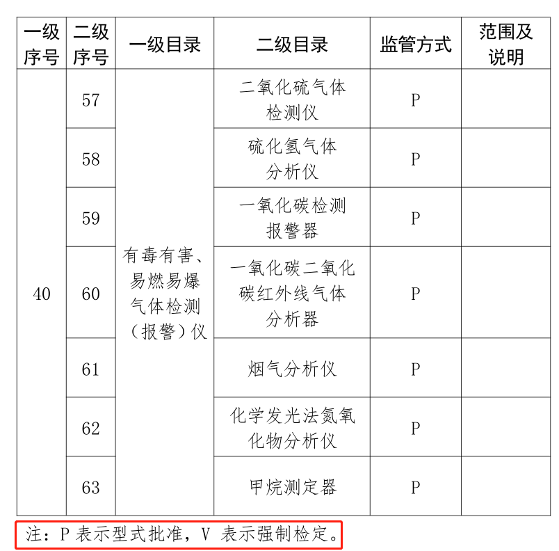 那么国务院对强制检定的计量器具目录是怎么规定的呢?气体检测报警仪是否被列入了呢?我们继续看一份文件,2019年10月,机构改革之后新组建的市场监督管理总局发布了48号文《市场监管总局关于发布实施强制管理的计量器具目录的公告》,其中对气体检测报警仪的规定如下: